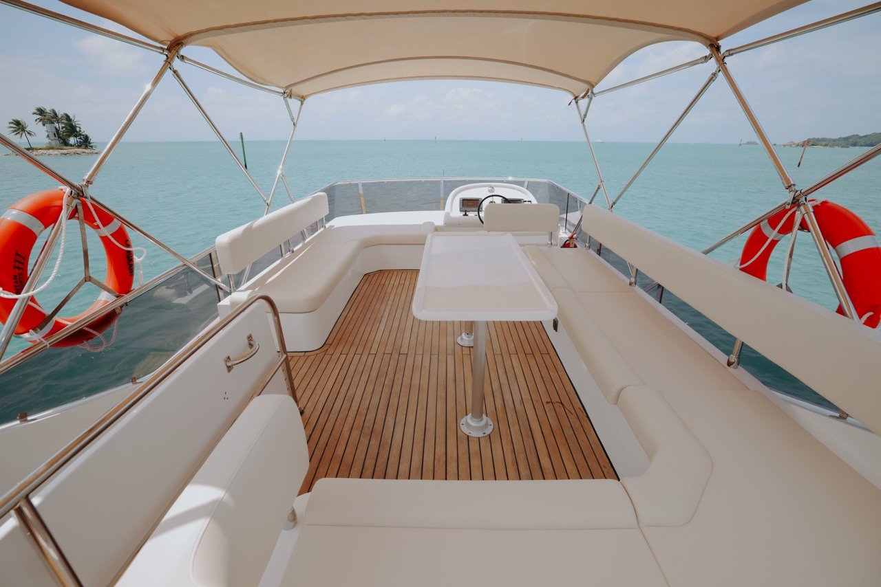 Step aboard our Brand New 63ft Flybridge Yacht and explore the beautiful waters of Bintan Island in comfort and style. Designed with a spacious open layout, modern amenities, and elevated panoramic views from the flybridge deck, this luxury vessel delivers the perfect balance of performance, relaxation, and refined atmosphere at sea.